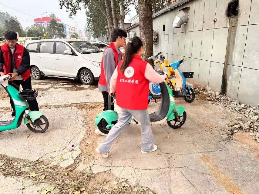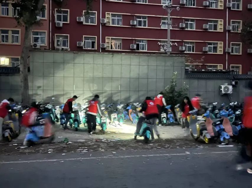 引導(dǎo)返校學(xué)生把共享單車按照順序停到指定位置,2024年10月27日周日下午4:50之前到辦公樓前集合,5:00準(zhǔn)時開展,活動中志愿者身穿紅色馬甲到達(dá)目的地,分工明確,配合默契,將散布的共享單車一一放回原位排列整齊,并引導(dǎo)返校同學(xué)文明擺放共享單車,志愿者們還用實際行動向過往的同學(xué)們宣傳文明出行的意義,在他們的行動下,夜晚校園外的共享單車成了一道亮麗的美景,從下午到晚上,他們的身影忙碌又堅定,他們的每一滴汗水都是一份責(zé)任。