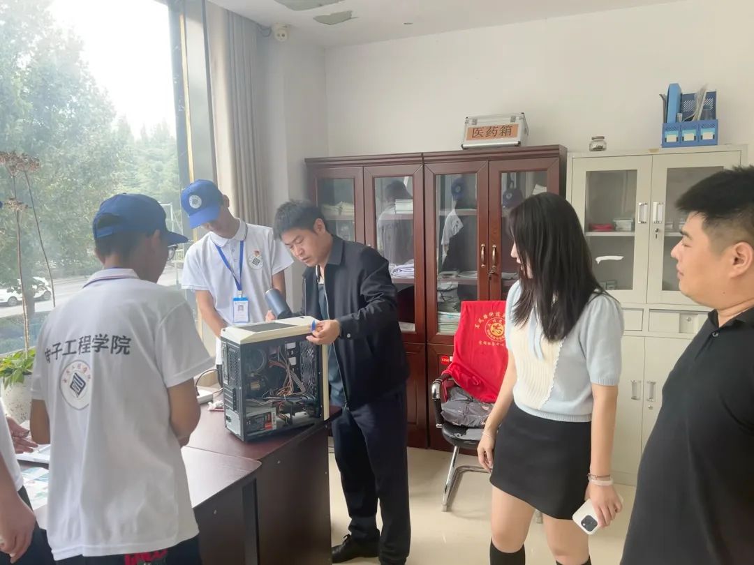 為深入學(xué)習(xí)貫徹落實(shí)習(xí)近平總書記關(guān)于教育的重要論述,和落實(shí)電子工程學(xué)院“一院一品”的1+2+3+0+N的黨建工作法,電子工程學(xué)院堅(jiān)持以黨建引領(lǐng)專業(yè)建設(shè),積極探索“黨建+專業(yè)”融合發(fā)展的實(shí)踐路徑,同學(xué)們走出校門,走進(jìn)社區(qū)。進(jìn)一步深化社區(qū)與學(xué)校聯(lián)建共建,2024年9月29日電子工程學(xué)院聯(lián)合東風(fēng)路街道盛源社區(qū)開展“e網(wǎng)情深、e心向黨"義維修電腦系列活動(dòng),突顯專業(yè)特色,聚焦群眾需求,幫助群眾解決電腦問(wèn)題。此次現(xiàn)場(chǎng)實(shí)踐活動(dòng),不僅是一次技術(shù)知識(shí)的普及與推廣,更是一次創(chuàng)新探索的生動(dòng)實(shí)踐,展示宣傳我院特色與亮點(diǎn),強(qiáng)化學(xué)生專業(yè)能力,扎實(shí)推動(dòng)勞動(dòng)教育,共筑紅色實(shí)踐基地。