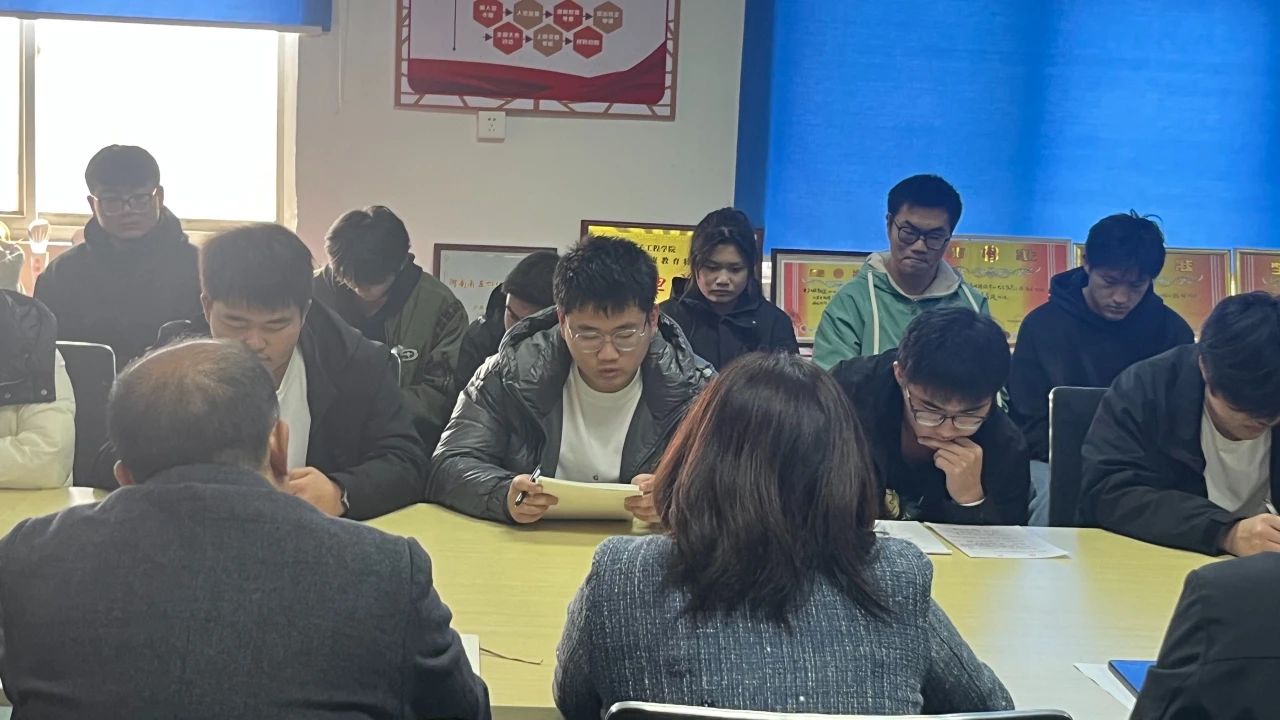 綜合辦公室主任田峰林發(fā)言,表達(dá)對學(xué)生學(xué)習(xí)生活情況的關(guān)心,簡要說明學(xué)院在提升教學(xué)質(zhì)量、改進(jìn)教學(xué)方式等方面所做的努力,并鼓勵學(xué)生積極表達(dá)意見和建議。
