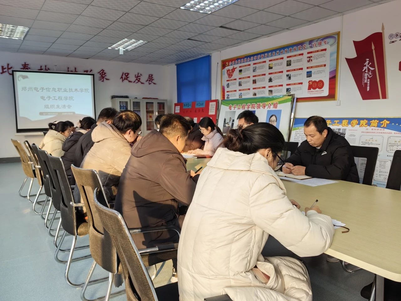 2024年12月24日下午15:30,電子工程學院在綜合辦公室606成功舉辦了以“深入開展黨員批評與自我批評,促進黨員自我提升與黨組織建設(shè)”為主題的組織生活會。電子工程學院全體黨員及預(yù)備黨員教師參加了此次會議。