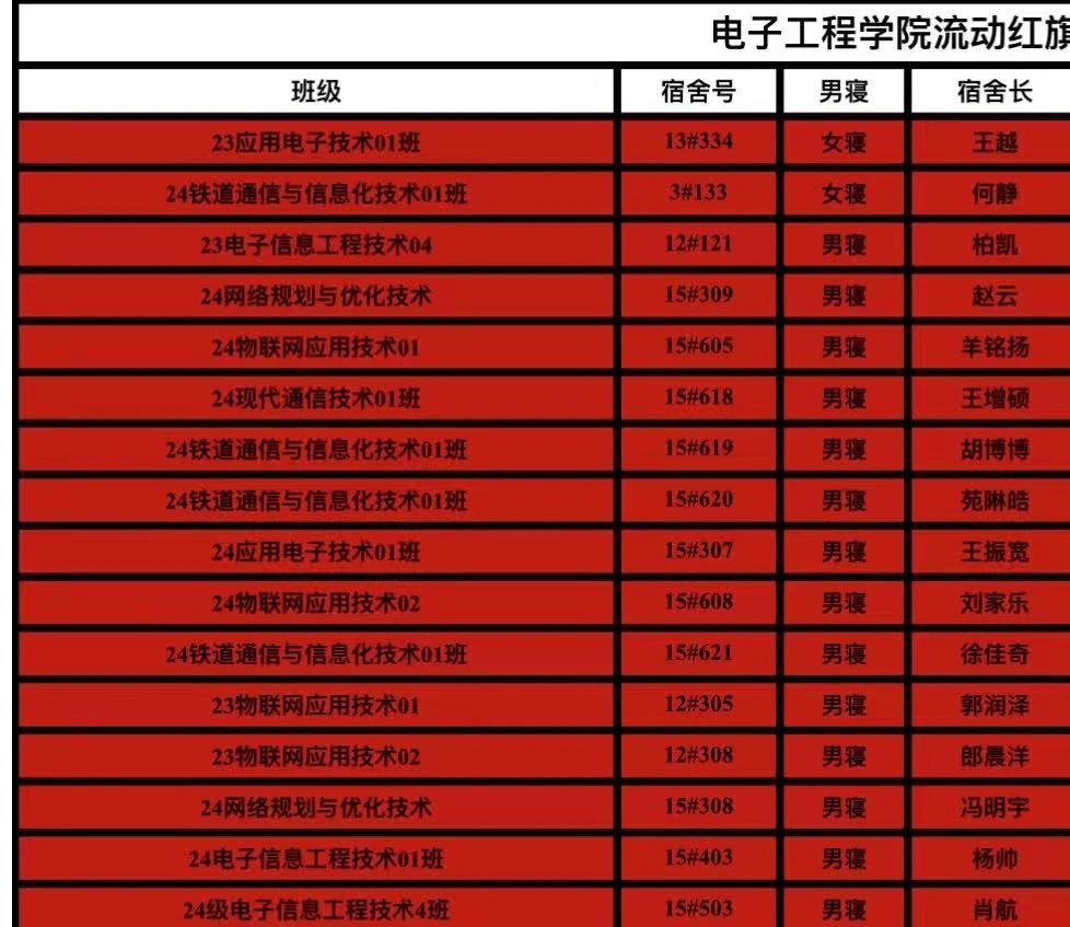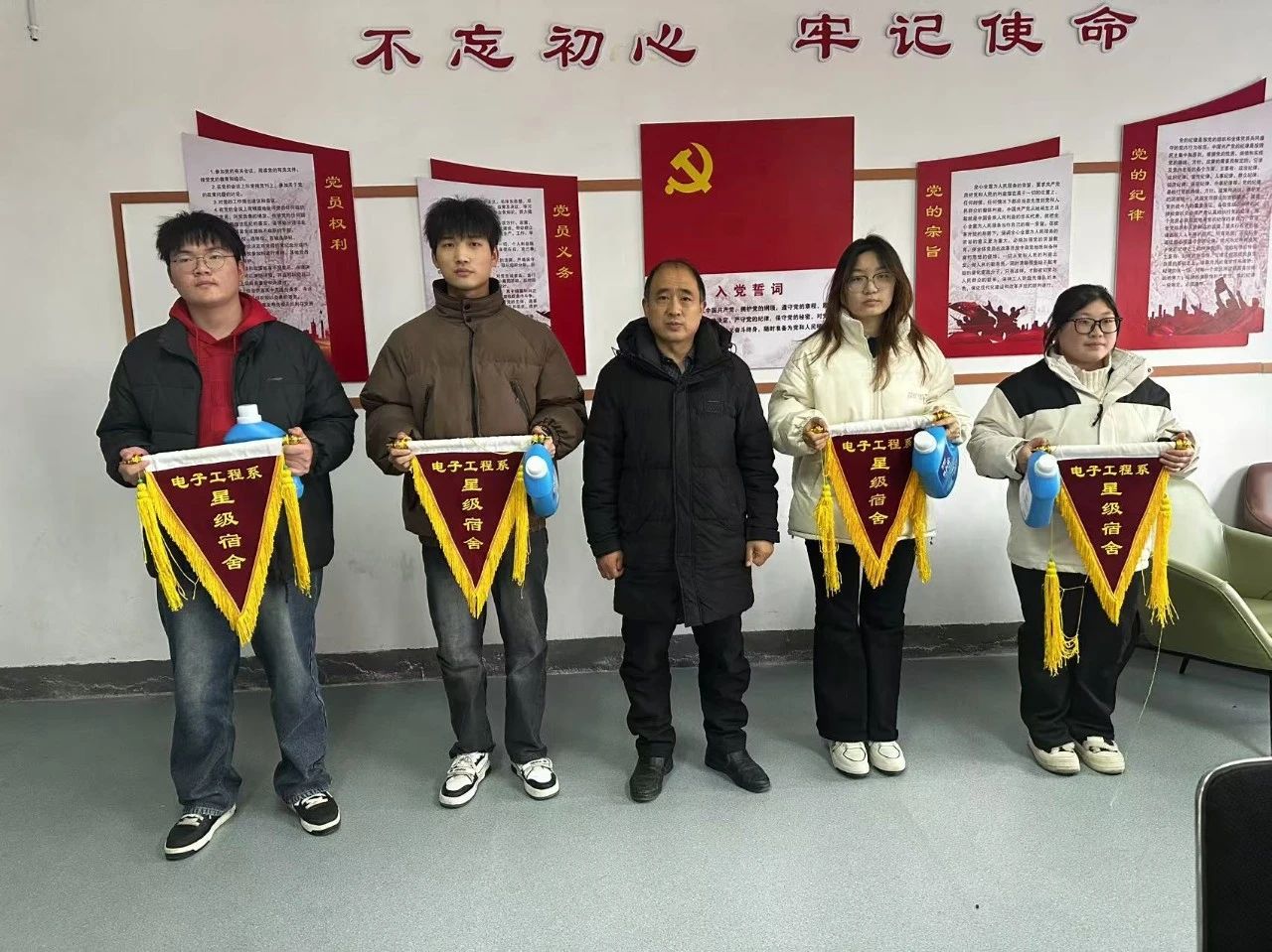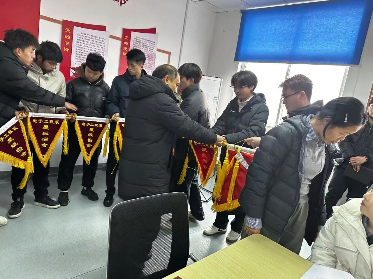 為不斷進一步增強電子工程學院學子們的衛(wèi)生意識和文明素養(yǎng),展現(xiàn)良好的校園形象,電子工程學院于2025年2月24日開展了“流動紅旗”評比活動。黨總支書記王正偉、學生黨支部書記對上周優(yōu)秀宿舍頒發(fā)流動紅旗,各班級班長、團支書、電子工程學院生活部參與本次頒發(fā)儀式。