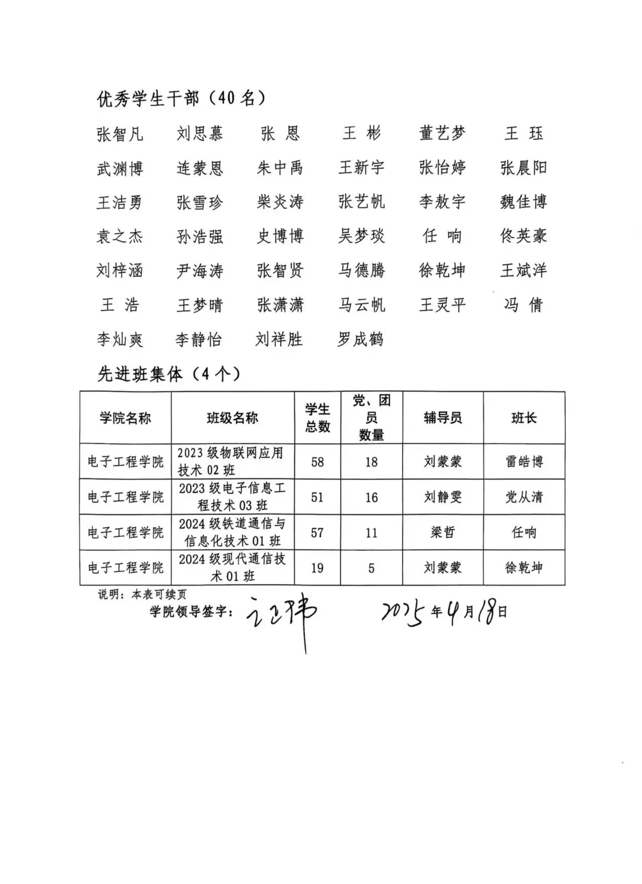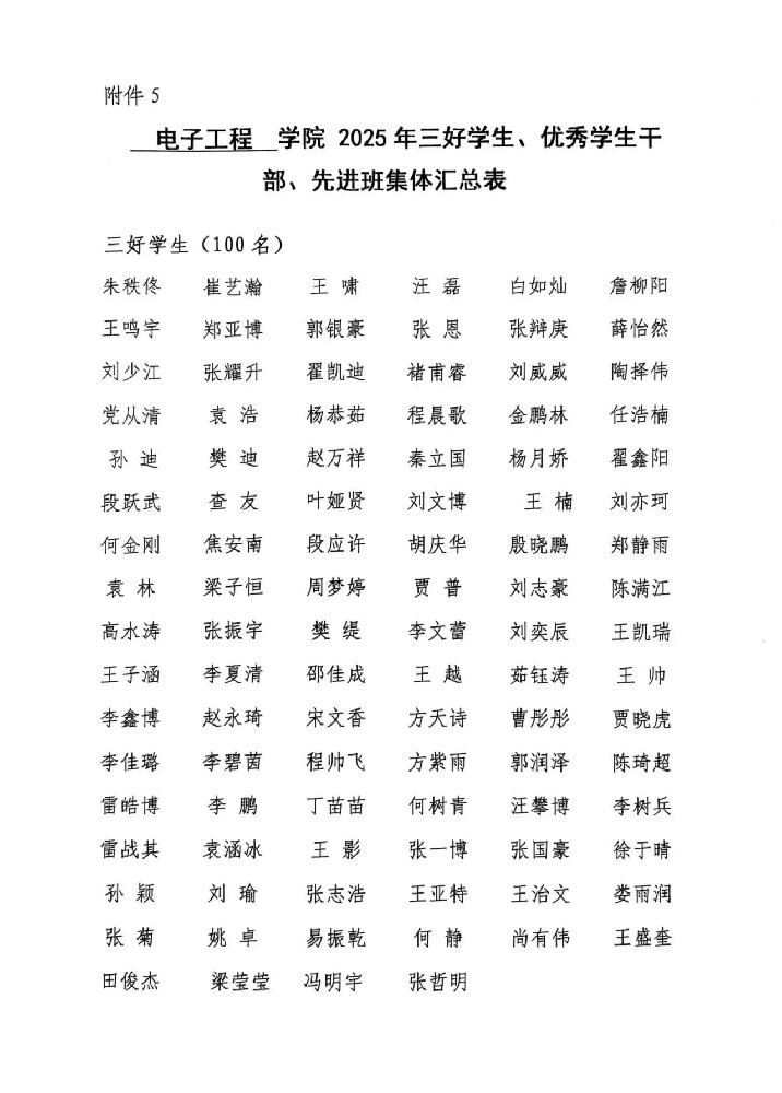電子工程學(xué)院 | 2025年三好學(xué)生、優(yōu)秀學(xué)生干部、先進(jìn)班集體和校獎(jiǎng)學(xué)金學(xué)生名單公示