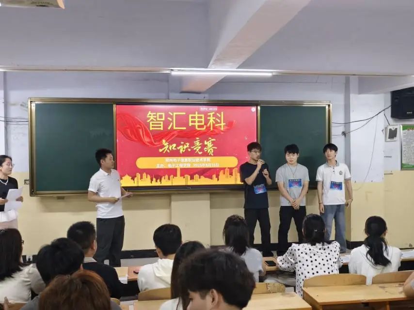 為全面展示職業(yè)教育特色與育人成果,切實(shí)提升學(xué)生職業(yè)技能水平與實(shí)踐創(chuàng)新能力,營(yíng)造崇尚技能、尊重勞動(dòng)的良好學(xué)習(xí)氛圍,2025年5月15日下午,在6號(hào)樓202教室電子工程學(xué)院成功舉辦了一場(chǎng)別開(kāi)生面的知識(shí)競(jìng)賽,此次競(jìng)賽旨在激發(fā)同學(xué)們對(duì)專業(yè)知識(shí)的探索熱情,提升其綜合素養(yǎng),為廣大學(xué)生提供一個(gè)展示自我的平臺(tái)。活動(dòng)吸引了眾多同學(xué)的積極參與,現(xiàn)場(chǎng)氣氛熱烈非凡。