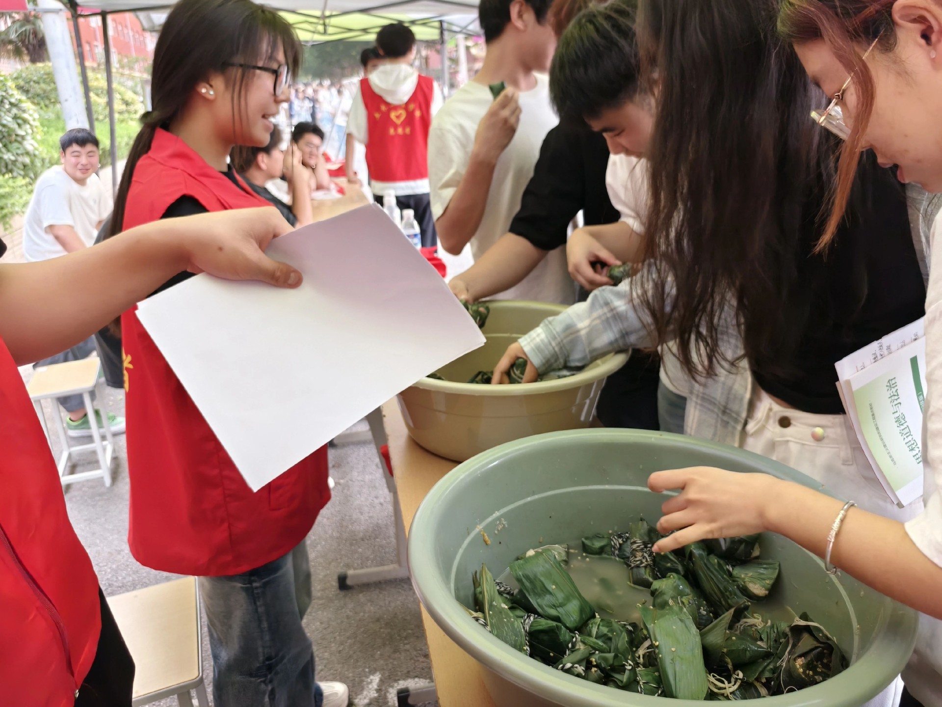 活動(dòng)現(xiàn)場,一個(gè)個(gè)飽滿的粽子整齊擺放,粽葉的清香彌漫在空氣中,傳遞著濃濃的節(jié)日氣息。學(xué)院領(lǐng)導(dǎo)、老師和志愿者們一起將粽子分發(fā)給每一位同學(xué),親切地與同學(xué)們交談,詢問他們的學(xué)習(xí)和生活情況,叮囑大家注意身體健康,鼓勵(lì)同學(xué)們?cè)趯W(xué)業(yè)上不斷進(jìn)取。