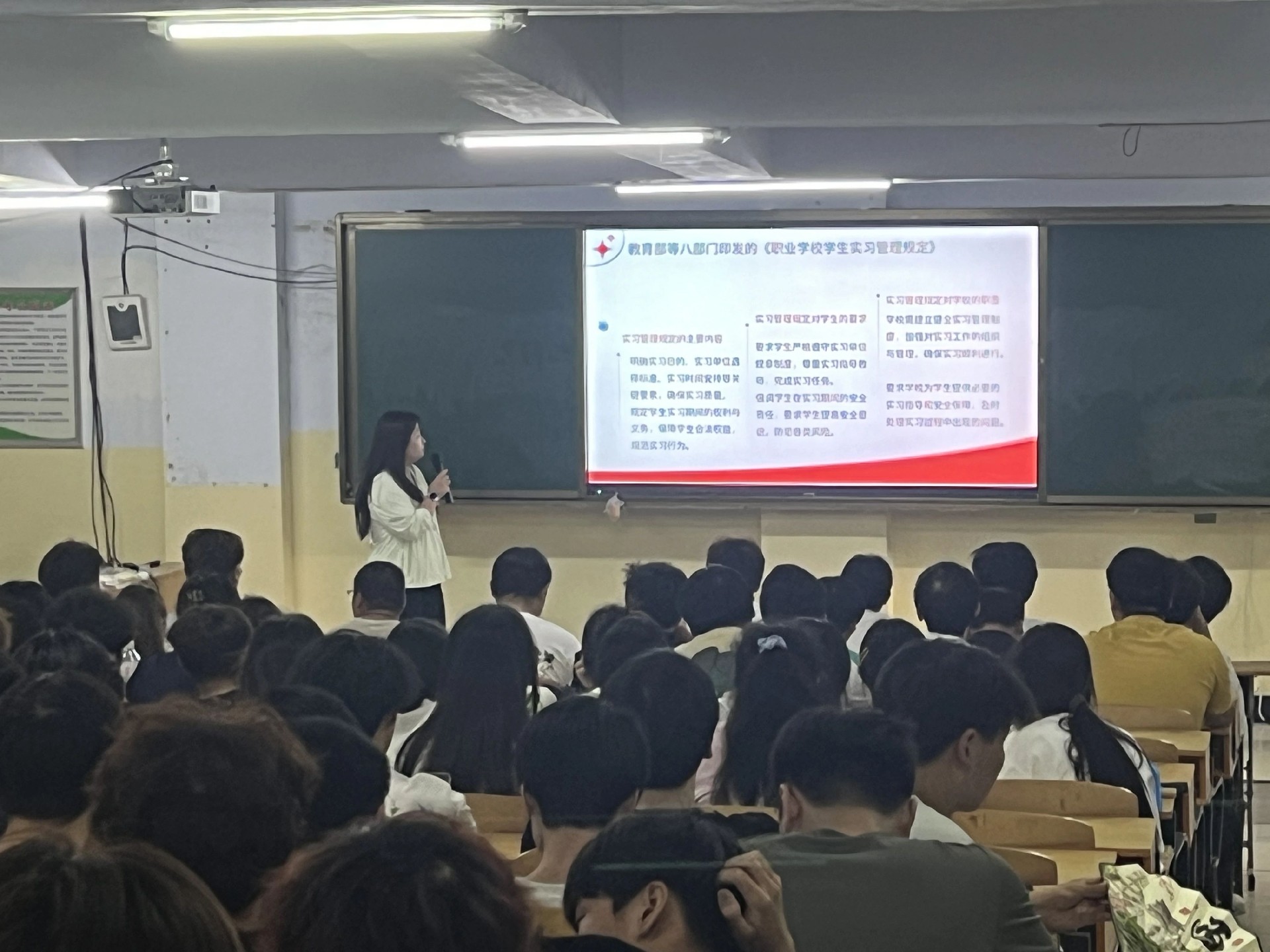 實習指導老師首先帶領(lǐng)學生們認真學習了教育部等八部門發(fā)布的《職業(yè)學校學生實習管理規(guī)定》的文件精神,解讀了職業(yè)學校實習備案管理平臺的作用,還詳細介紹了頂崗實習的安排,包括實習時間、實習單位、實習崗位。并就實習任務、實習考核等方面進行了說明,要求同學們嚴格遵守實習單位的規(guī)章制度,按時完成實習任務,認真撰寫實習報告,確保實習質(zhì)量。