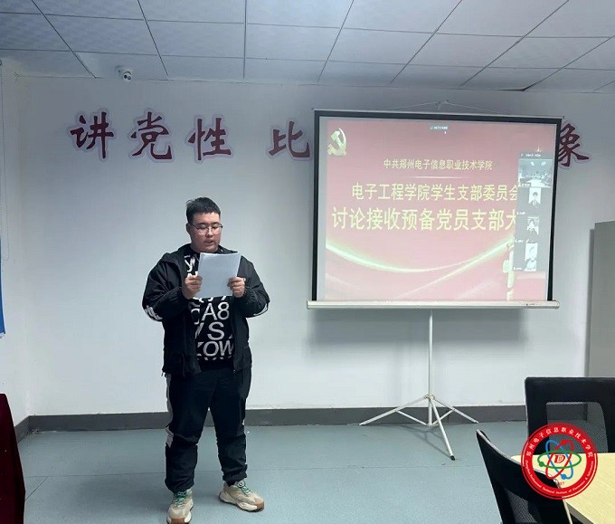 2023年12月5日下午,我院在辦公樓606會議室召開以“電子工程學院學生黨支部接收預備黨員大會”為主題會議。黨總支書記張志愿、學生黨支部書記李玲玲同志以及其余黨員同志、4名發(fā)展對象現(xiàn)場參會、3名發(fā)展對象通過第二會場線上視頻參加會議。