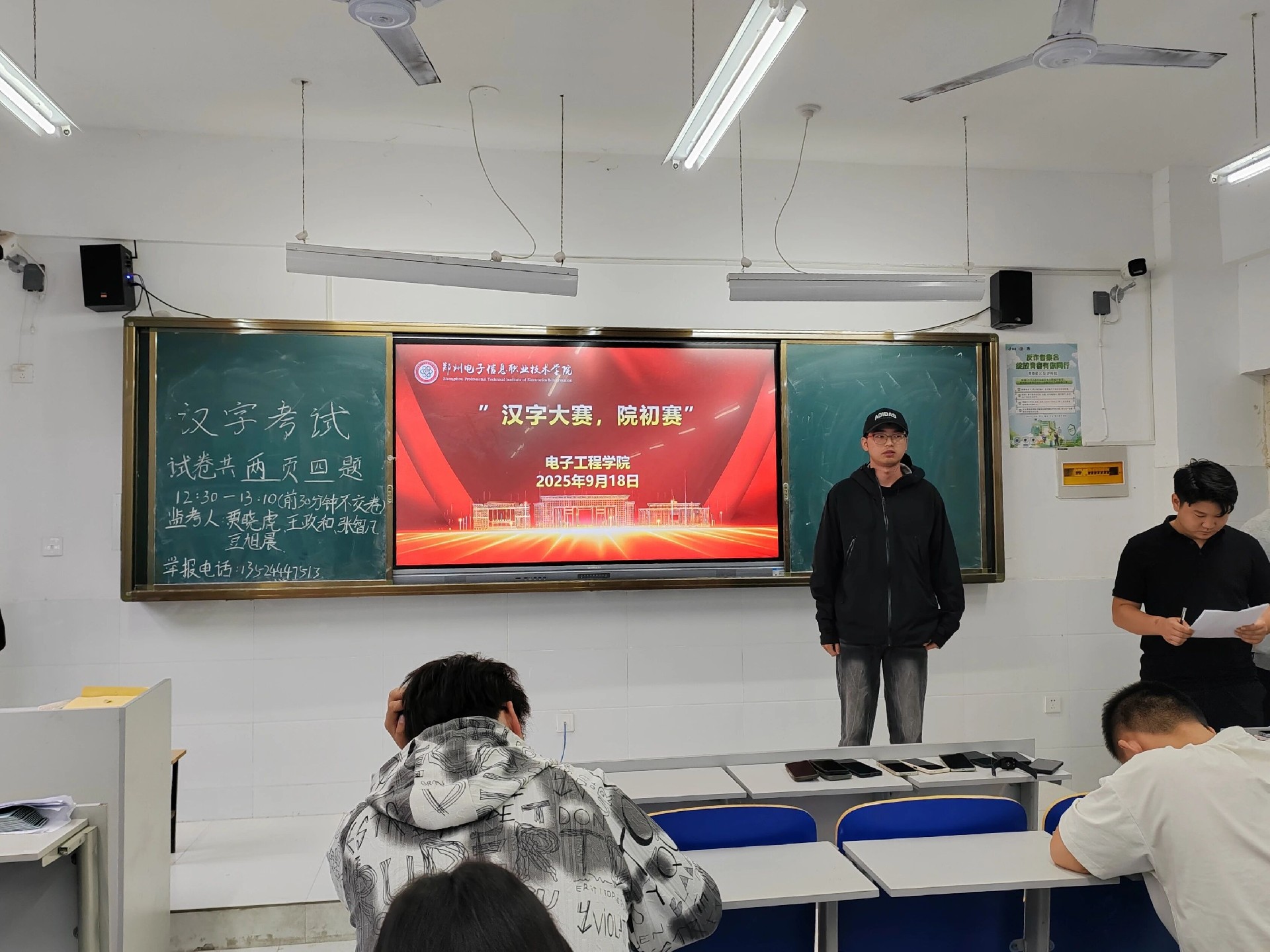在數(shù)字化浪潮洶涌的今天,漢字所承載的文化底蘊與智慧光芒愈發(fā)璀璨。為迎接河南省漢字大賽,弘揚中華優(yōu)秀傳統(tǒng)文化,提升學(xué)子的漢字素養(yǎng)與文化自信,電子工程學(xué)院于2025年9月18日5號教學(xué)樓105舉辦漢字大賽院初賽,來自各專業(yè)班級50 余人參賽。