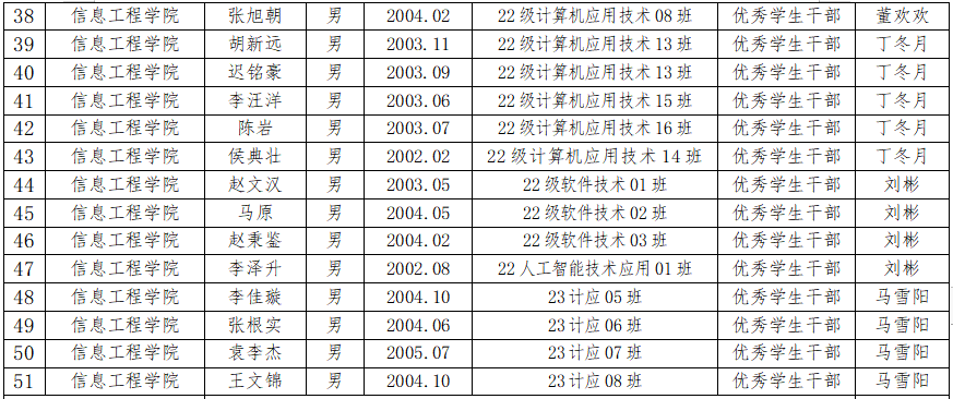 如對(duì)公示內(nèi)容有異議,請(qǐng)于公示期內(nèi)向信息工程學(xué)院輔導(dǎo)員辦公室反映。