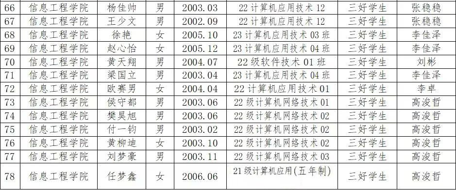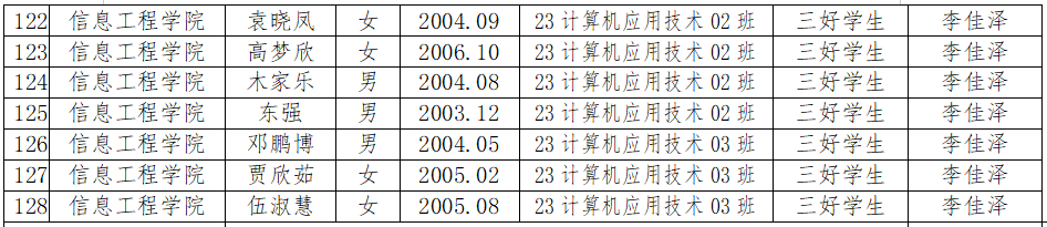 擬推薦2023級(jí)軟件技術(shù)01班等5個(gè)班級(jí)為先進(jìn)班集體、劉曉璐等51人為優(yōu)秀學(xué)生干部、黃天翔等128人為三好學(xué)生,現(xiàn)將評(píng)選結(jié)果公示如下,公示期三天。