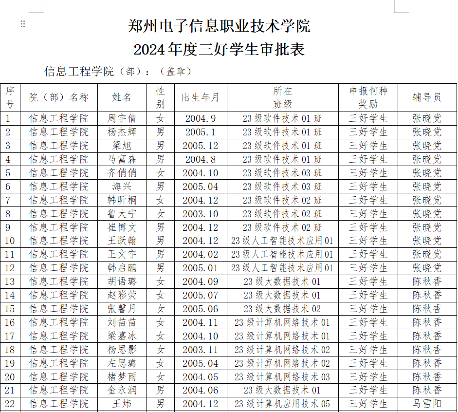 信息工程學(xué)院 | 2024年度先進(jìn)班集體、優(yōu)秀學(xué)生干部和三好學(xué)生評(píng)選結(jié)果公示