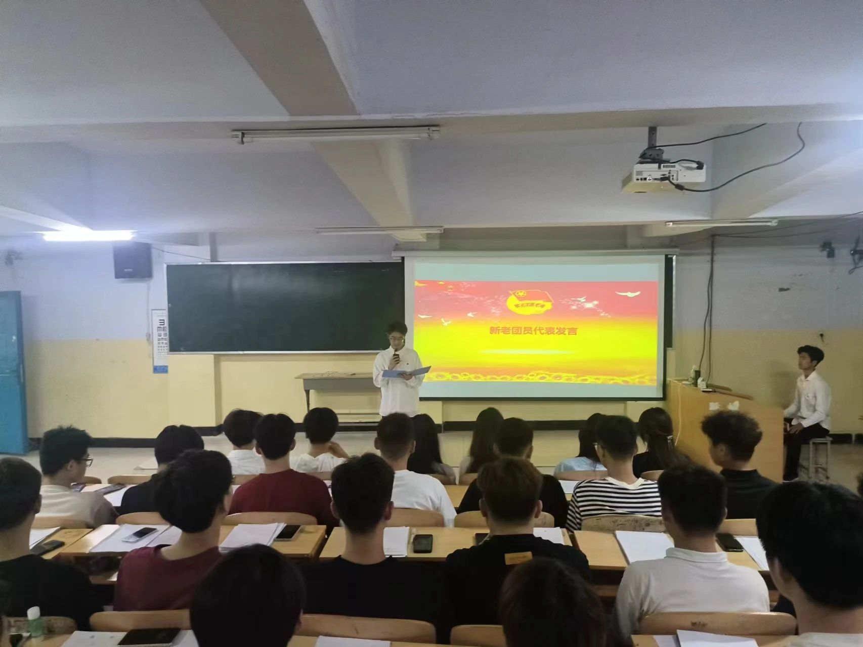 會議進行第三項,由新團員代表夏俊和優(yōu)秀團員代表姚德寶同學進行發(fā)言。他們表示將時刻牢記自己的團員身份,以更高的標準要求自己,努力學習,積極奉獻,為實現(xiàn)中華民族偉大復興貢獻青春力量,在新時代廣闊天地中施展抱負,頑強拼搏,努力成長為堪當民族復興重任的時代青年。