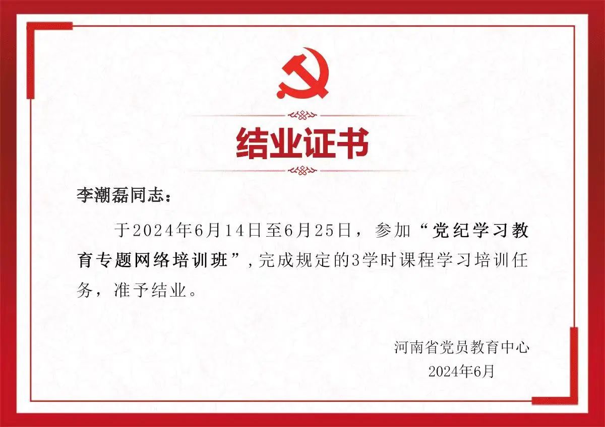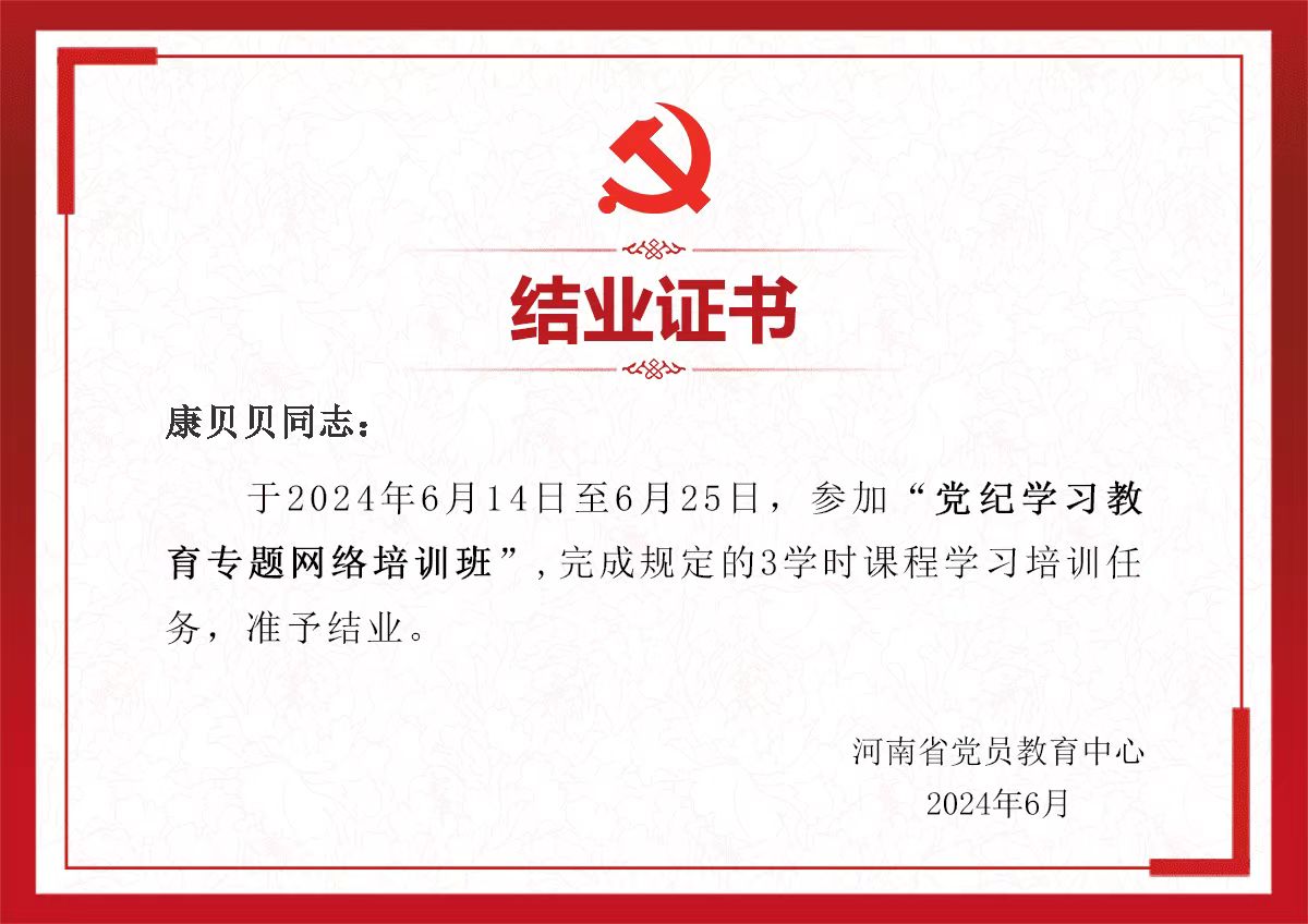 黨員教育“云課堂”采取“線下動員+線上授課”的形式,參訓(xùn)學(xué)生黨員可通過手機終端掃描二維碼入班培訓(xùn),也可通過遠(yuǎn)程教育終端站點和河南黨員教育服務(wù)網(wǎng)“黨紀(jì)學(xué)習(xí)教育”專欄學(xué)習(xí),學(xué)習(xí)課程嚴(yán)格按照時間要求修滿學(xué)時,參與考試成績合格后,均順利獲得結(jié)業(yè)證書。