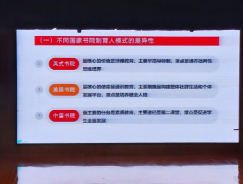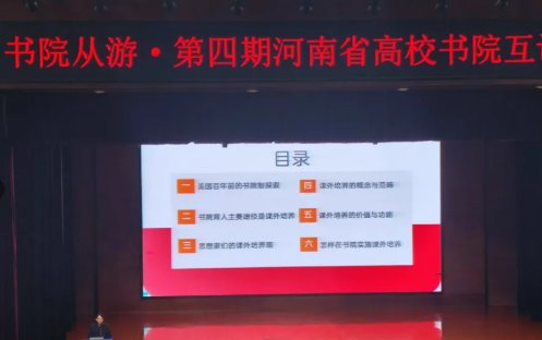 溫州大學發(fā)展規(guī)劃處處長、高等教育研究院何毅院長,河南科技大學楊國欣教授分別做了《書院育人模式下推進課外培養(yǎng)的思考與探索》和《從書院教育組織模式的分野看現(xiàn)代大學書院教育探索的守正與創(chuàng)新》兩個專題講座。