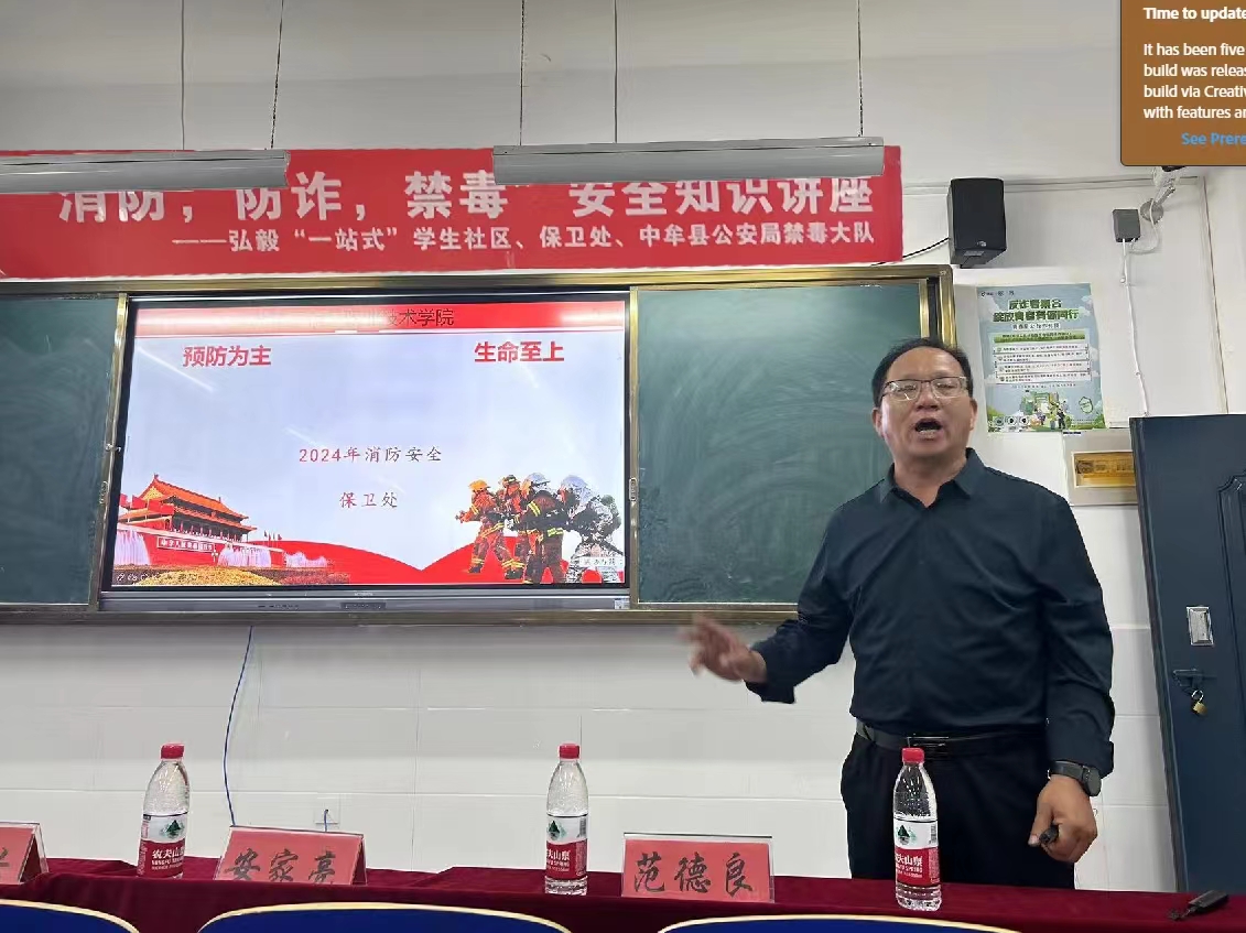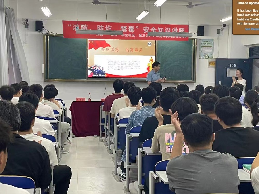 我校保衛(wèi)處范德良處長為同學(xué)們進(jìn)行了消防、防詐知識(shí)講座,內(nèi)容涵蓋了消防安全、網(wǎng)絡(luò)安全、個(gè)人防護(hù)等多個(gè)方面。范處長通過生動(dòng)的案例和專業(yè)的分析,向同學(xué)們詳細(xì)介紹了各類安全問題的成因、預(yù)防措施以及應(yīng)對(duì)方法。同時(shí),還就校園內(nèi)常見的安全隱患進(jìn)行了重點(diǎn)講解,提醒同學(xué)們在日常生活中要提高警惕,增強(qiáng)安全意識(shí)。