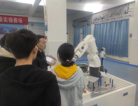 校內(nèi)實訓室能夠滿足本專業(yè)基本要求,本專業(yè)校內(nèi)實訓室有一批先進的實踐教學設(shè)備,專業(yè)實驗室能夠承擔包括電工電子實習、機械基礎(chǔ)課程設(shè)計實習、機電傳動和控制實習、液壓與氣動實習、傳感器與檢測技術(shù)實習、PLC實習、單片機實習、機器人編程與應用仿真實習、機器人技術(shù)應用實習、畢業(yè)頂崗實習等,很好的滿足了學生實習實訓要求,能夠充分提高學生動手能力。